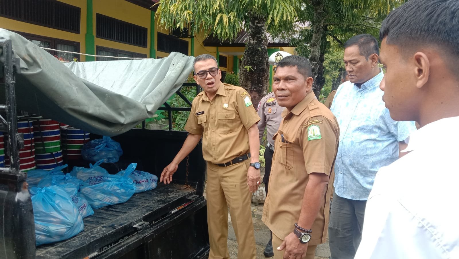 Kepala Cabang Dinas Pendidikan  Wilayah Aceh Tamiang, Baktiar, S.Pd, M.Pd di damping Syaiful, S.Pd Kepala Sekolah SMAN 4 Kejuruan Muda mengatakan, untuk perdana pembagian Makan Bergizi Gratis perdana ini untuk tingkat SLTA ada lima sekolah, diantara SMAN 2 Kejuruan Muda, SMAN 4 Kejuruan Muda MAN 2 Aceh Tamiang dan SMK Maimun Habsah.