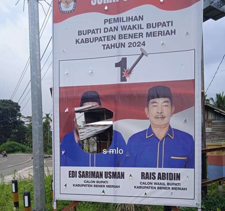 Bener Meriah- satupena.co.id: Proses demokrasi di Bener Meriah diwarnai aksi provokasi melalui perusakan alat praga kampanye calon Bupati dan Wakil Bupati Bener Meriah dari pasangan nomor urut 1 Edi Sariman Usman dan Rais Abidin.