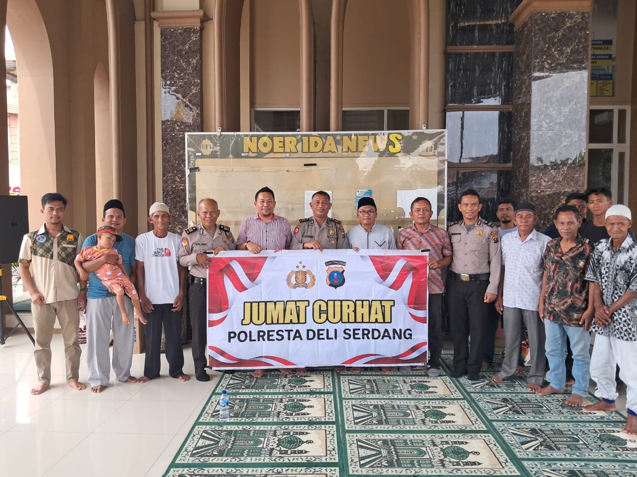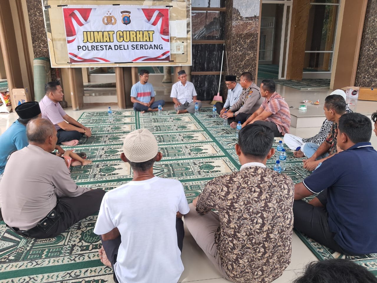 Jumat Curhat merupakan program Polri dengan tujuan membangun kemitraan kepada masyarakat didalam membangun kamtibmas dan meningkatkan intensitas untuk lebih sering bertatap muka didalam menyerap aspirasi kepada masyarakat dan memberikan informasi terkait dengan situasi kamtibmas diwilayah Kabupaten Deli Serdang yang kali ini dilaksanakan di Mesjid Noer Ida Desa Penara Kebun Kecamatan Tanjung Morawa. Jumat (19/7/2024)
