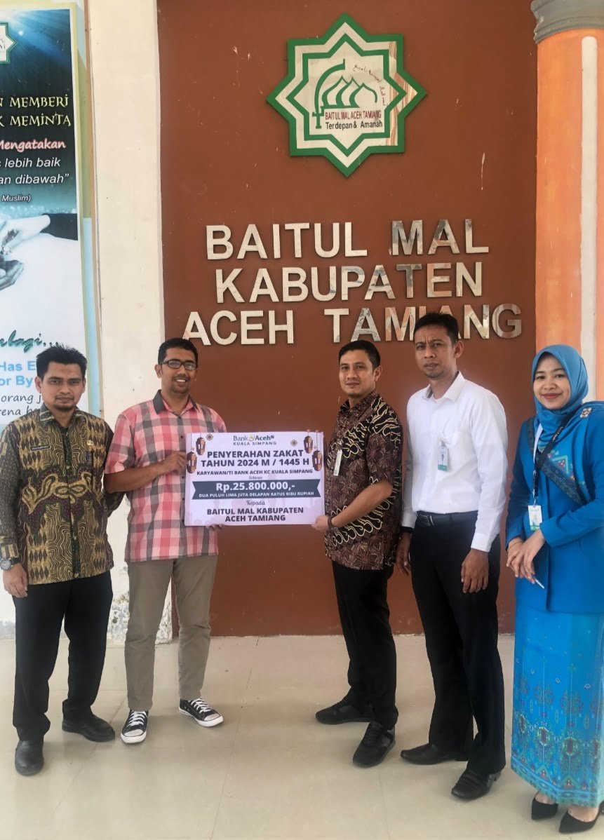Sementara itu terpisah, Kepala Bank Aceh Syariah Cabang Kualasimpang, Afrian saat menyerahkan langsung kepada Ketua Baitul Mal Kabupaten pada kamis (28/3) menjelaskan, zakat yang disetor merupakan zakat penghasilan karyawan/karyawati Bank Aceh Cabang Kualasimpang. “Kita harapkan dengan adanya zakat ini bisa mengurangi beban hidup masyarakat dan bermanfaat bagi umat,” harapnya.