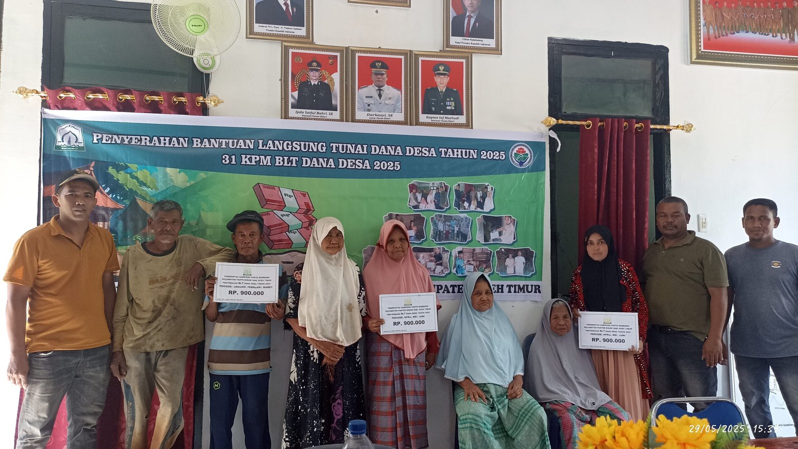 Sebanyak 31 Keluarga Penerima Manfaat (KPM) menerima Bantuan Langsung Tunai Dana Desa (BLT DD) Tahap II Tahun 2025. Setiap penerima mendapatkan bantuan sebesar Rp: 900.000, yang mencakup untuk tiga bulan — April, Mei, dan Juni — dengan rincian Rp: 300.000 per bulan.