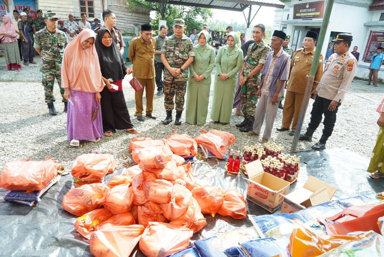satupena.co.id: Aceh Barat, Dalam rangka menyambut Hari Raya Idul Fitri 1445 Hijriah, Kolonel Inf Deni Gunawan, Danrem 012/TU, didampingi Ketua Persit KCK Koorcabrem 012, secara simbolis menyerahkan Bazar Murah kepada masyarakat yang digelar di Kantor Camat Bubon, Gp. Layong, Kec. Bubon, Kab. Aceh Barat, pada Selasa (2/4/2024).