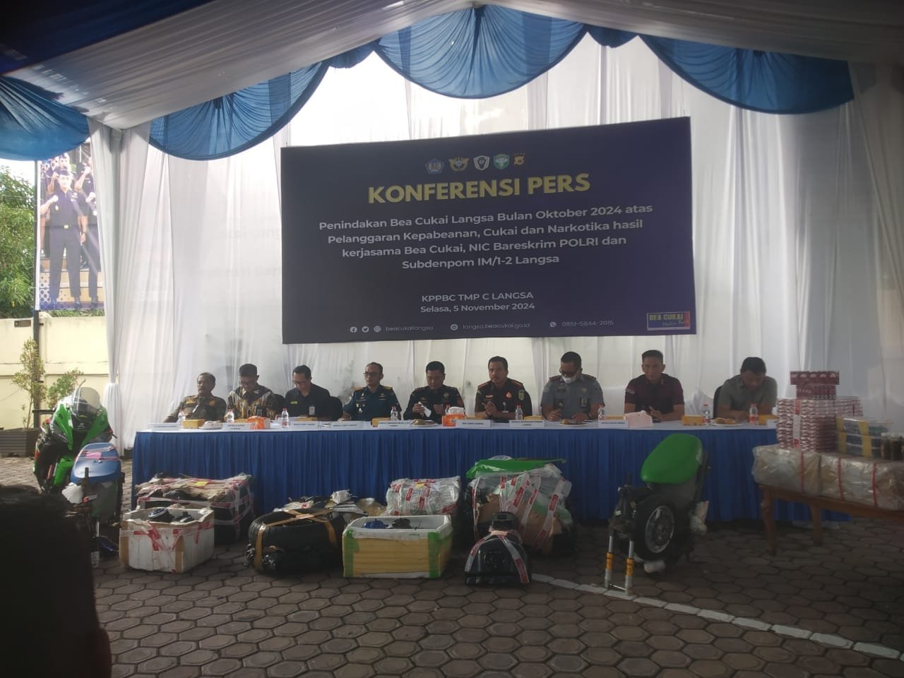 Kota Langsa- satupena.co.id: Bea Cukai Langsa terus memperkuat upaya dalam menjaga stabilitas keamanan dan ekonomi di wilayah Aceh melalui operasi pengawasan terhadap barang-barang ilegal. Sepanjang bulan Oktober 2024, Bea Cukai Langsa berhasil melakukan penindakan terhadap penyelundupan narkotika, barang impor legal, dan peredaran rokok ilegal dengan total potensi kerugian negara yang berhasil diselamatkan kurang lebih 165 Milyar Rupiah.Berikut adalah rangkaian kronologi dan hasil dari setiap penindakan yang dilakukan, 5 November 2024.