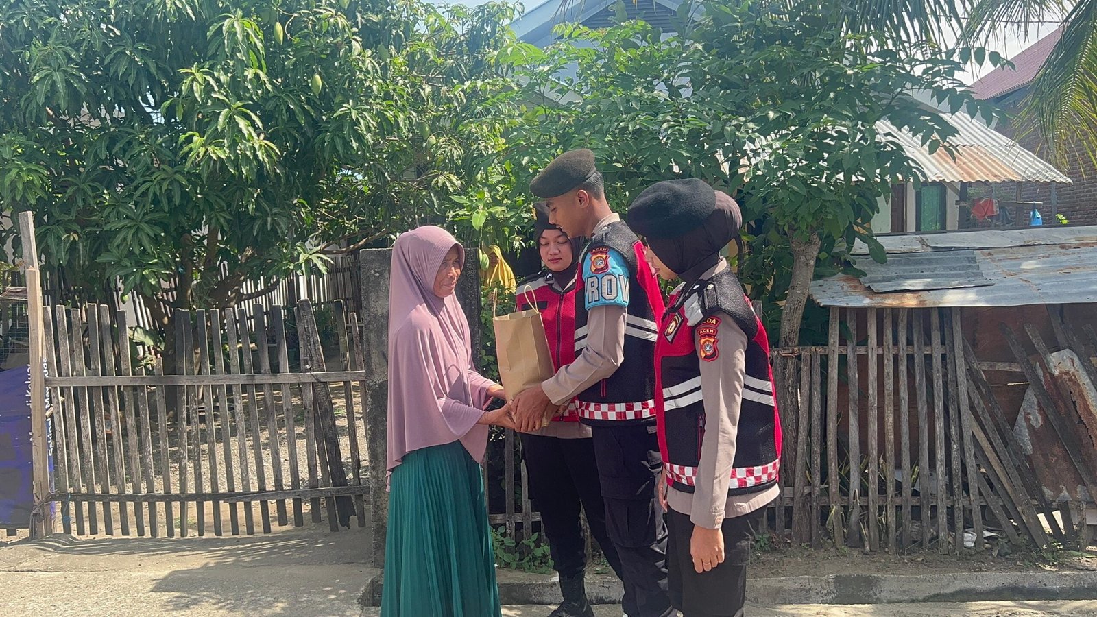 Sambil berpatroli, 10 personel Ditsamapta Polda Aceh membagikan sembako kepada warga kurang mampu di kawasan Banda Aceh, ujar Dirsamapta Polda Aceh.