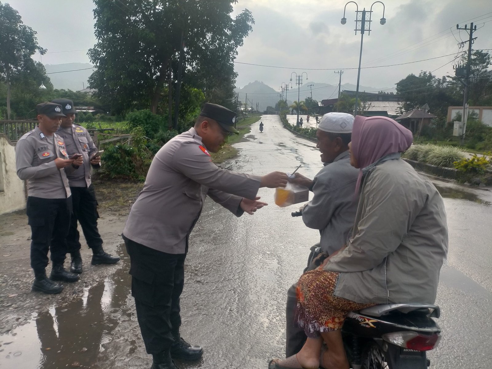 Selain membagikan takjil, Kapolsek juga mengingatkan para pengguna jalan untuk selalu tertib dalam berlalu lintas dan mengutamakan keselamatan.