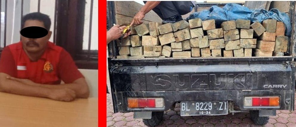 Adapun barang bukti yang diamankan dan disita dari HA diantara; satu unit mobil Suzuki Carry jenis Pick Up Nomor Polisi BL 8229 ZI warna hitam dengan muatan kayu olahan sekitar 83 batang dan 156 batang kayu olahan hasil pengembangan.