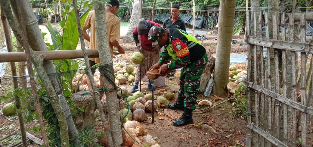 “Dari proses pengumpulan kelapa dari kebun hingga pengupasan kelapa dan proses pengasapan, Babinsa turut membantu. Dengan tujuan mendorong para petani Kopra dalam peningkatan penghasilan serta menumbuhkan keharmonisan Babinsa bersama warganya.” Ungkapnya.