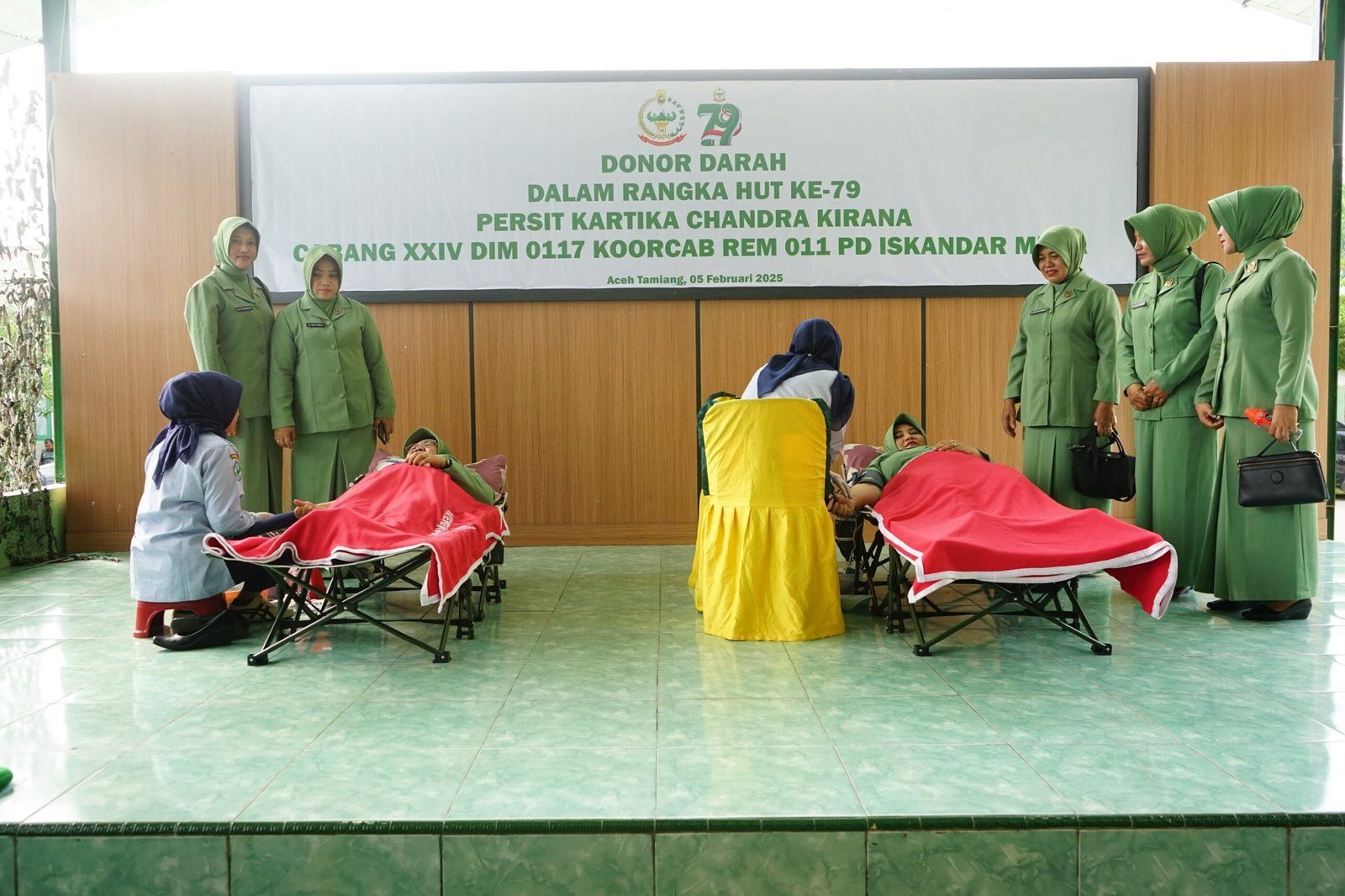 Komandan Kodim 0117/Aceh Tamiang Letkol Inf Andi Aryanto, S.I.P., yang di wakili oleh Kasdim 0117/Aceh Tamiang Mayor Cpm Lili Fitriadi mengatakan, bakti sosial donor darah ini dilaksanakan dalam rangka memperingati HUT Ke-79 Persit Kartika Chandra Kirana Tahun 2025, juga sebagai wujud bakti Persit Kartika Chandra Kirana khususnya Cabang XXIV Kodim 0117/Aceh Tamiang untuk membantu meringankan beban masyarakat khususnya masyarakat yang membutuhkan uluran tangan kita terkait dengan kesehatan masyarakat serta untuk membantu akan ketersediaan stok darah di RS Tamiang dan PMI.