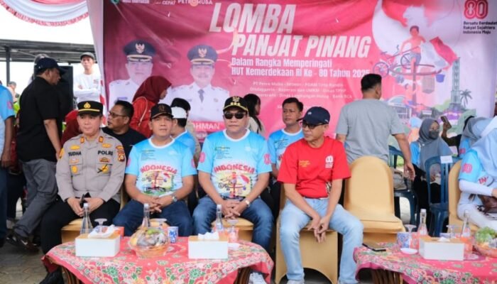 Sekayu, Satupena.co.id – Ratusan masyarakat Kabupaten Musi Banyuasin beramai-ramai mendatangi Taman Air depan Rumah Dinas Bupati Muba untuk menyaksikan lomba panjat pinang dalam rangka memeriahkan HUT ke-80 Republik Indonesia, Sabtu (16/8/2025).