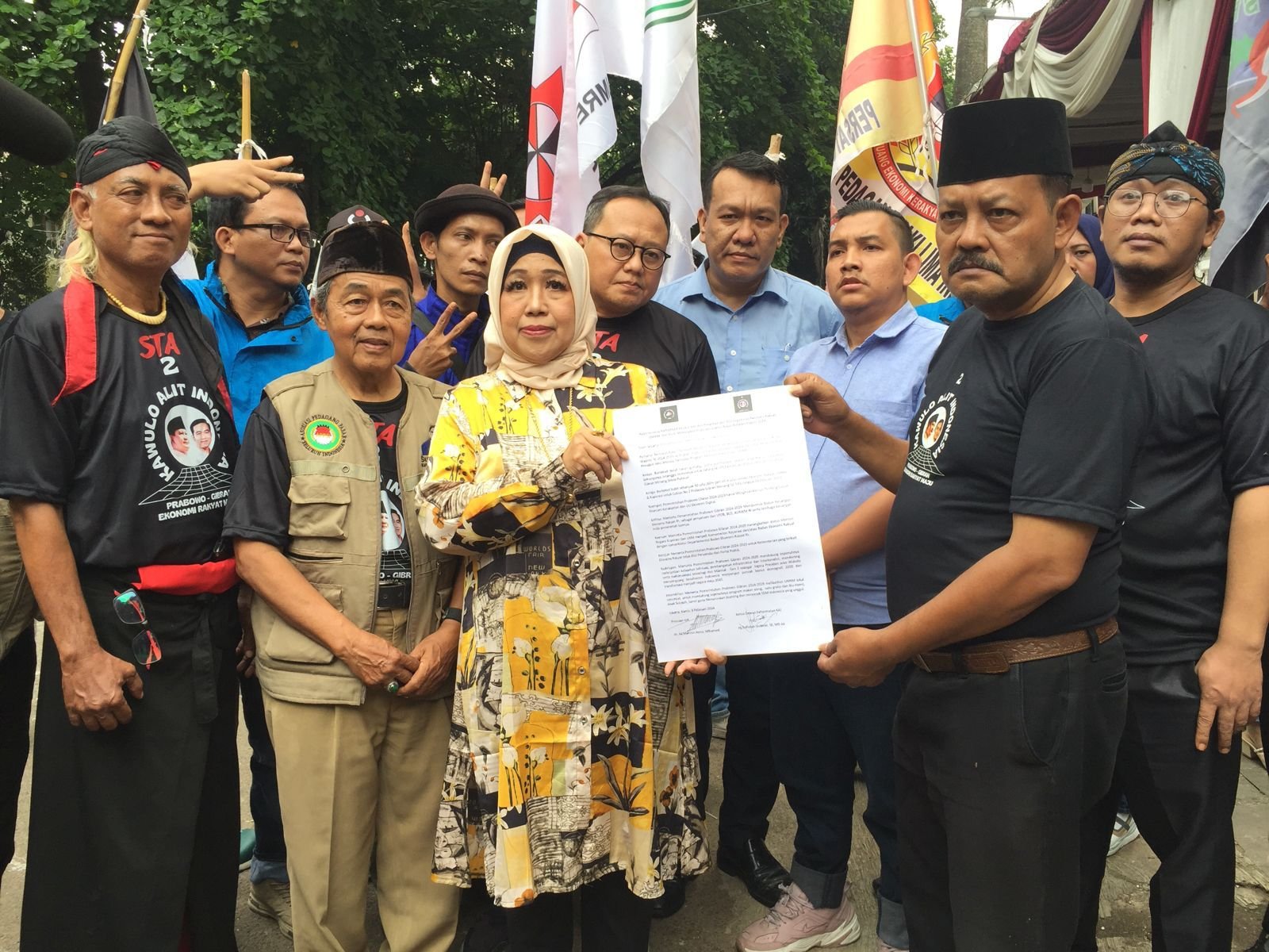 Rapimnas Khusus KAI dan 110 Organisasi Ekonomi Rakyat UMKM hasilkan 9 rekom diserahkan ke Paslon No 2 dikediaman Prabowo Kertanegara Jakarta. Diserahkan langsung Ketua Dewan Kehormatan KAI Sofiatun Gudono besan Jokowi dan Presiden KAI dr Ali Mahsun ATMO M Biomed. Jumat 9/2/2024 didampingi pimpinan dari 110 organisasi ekonomi rakyat UMKM. Dan piagam hasil rapimnas khusus ini juga ditanda tangani 7 Presidium Sidang, Suharto SS MM (APKLI Perjuangan), DR Douglas Pasaribu (Aljamin) DR Syahnan Phalipi (Hipmikindo) Ngadiran (APPSI) Desman Ariando (Koperasi Bahteta Insan Sejahtera) Fery Zonatri (PPSPI – Kuliner Seafood Pecel Lele) dan Eko Handoyo (Komunitas Seniman Indonesia). Dikirap 2 Bajaj, Ojol dan iringan mobil beserta 110 bendera organisasi ekonomi rakyat UMKM dari Hotel Jayakarta menuju Kediaman Prabowo Kertanegara Jakarta Selatan.