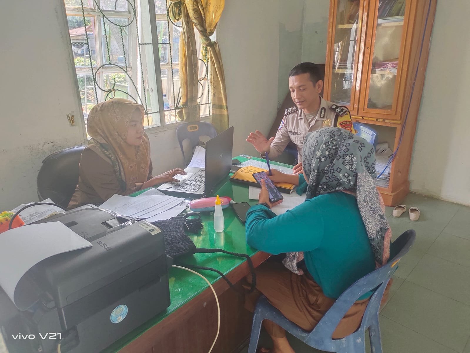 Sambang ke kantor Desa Mainu Tengah, bhabinkamtibmas Polsek Dolok Merawan Polres Tebing Tinggi Aipda Tri O. Sinulingga sampaikan pesan pesan kamtibmas kepada perangkat desa, Kamis (04/07/24).