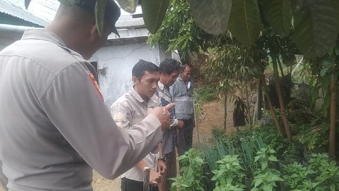 Bhabinkamtibmas Polsek Bintang Polres Aceh Tengah, Aipda Adi Winjaya, bersama petugas dari Balai Penyuluh Pertanian (BPP) melaksanakan kegiatan pengecekan perkembangan tanaman dalam program Pekarangan Pangan Bergizi di Kampung Sintep, Kecamatan Bintang, Kabupaten Aceh Tengah, Senin (2/6/2025).