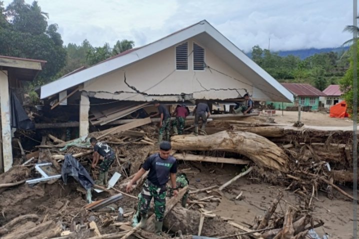 membersihkan area lingkungan pemukiman warga mereka juga menyingkirkan lumpur serta material kayu yang menutup lingkungan berserkan Upaya ini bertujuan agar masyarakat dapat kembali aman dan nyaman