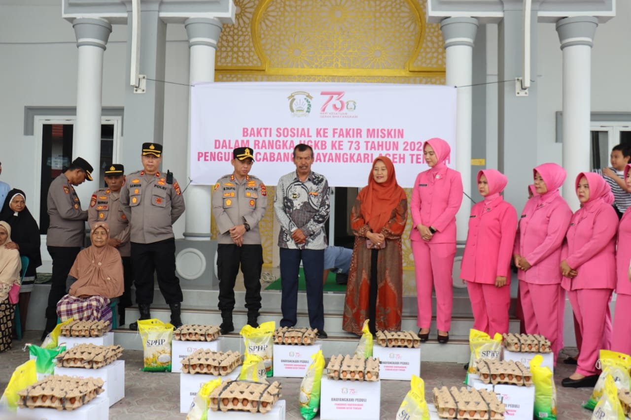Dalam rangka memperingati Hari Kesatuan Gerak Bhayangkari (HKGB) ke-73, Kapolres Aceh Tengah AKBP Muhamad Taufiq, S.I.K., M.H., didampingi Ketua Bhayangkari Cabang Aceh Tengah Ny. Vifa Taufiq bersama jajaran pengurus Bhayangkari melaksanakan rangkaian kegiatan sosial berupa bakti sosial, anjangsana, dan pemeriksaan kesehatan gratis, Sabtu (4/10/2025).