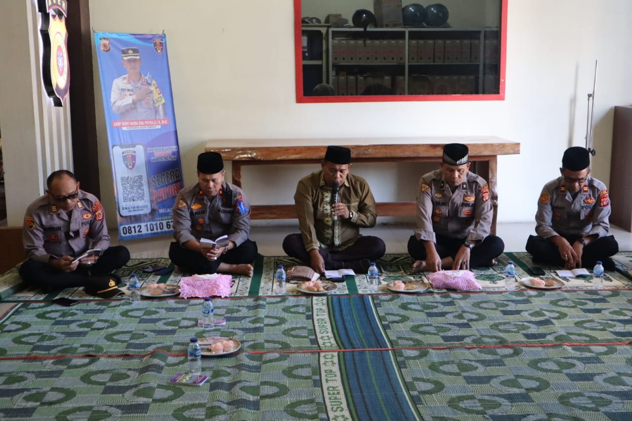 Kapolres Aceh Tengah AKBP Dody Indra Eka Putra,S.I.K, M.H, melalui Kasi Humas Akp Kariya, menyampaikan, hari ini kita mengundang Tgk.H.Budi Darmawan,M.Pd, selain memimpin pengajian Alquran surat yasin, Doa, juga dilanjutkan dgn tausiah singkat dengan tema”Persiapkan Ruhiyah, Ulumiyah, Jasadiyah dan Maliyah jelang Ramadhan”.