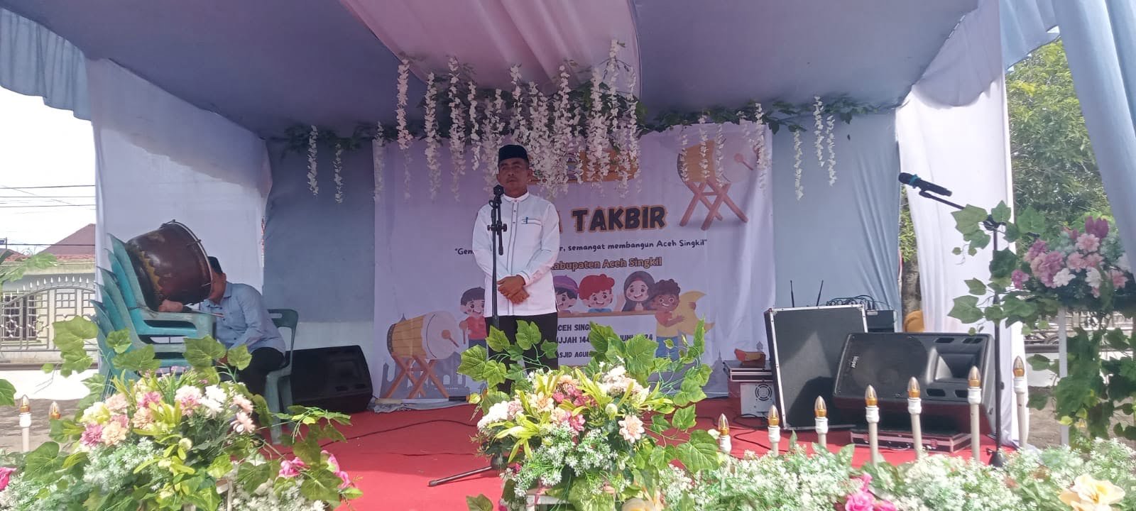 Mustafa Naibaho, Sekretaris Umum DPD BKPRMI Aceh Singkil, dalam laporannya menyampaikan terima kasih kepada Pemerintah Aceh Singkil dan Bank Aceh Syari’ah Singkil atas dukungan penuh mereka terhadap acara ini. Mustafa menegaskan bahwa kegiatan ini tidak hanya untuk menyambut Idul Adha, tetapi juga sebagai ajang bagi santri TPA untuk berkreasi dan menggemakan senandung takbir di Kabupaten Aceh Singkil.