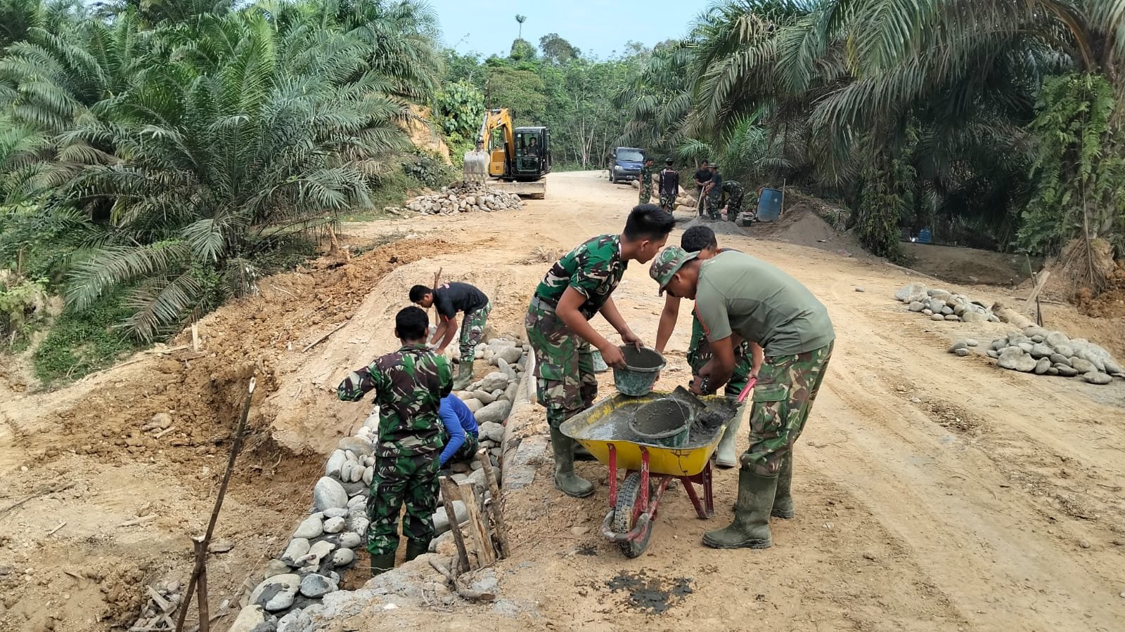 Pengerjaan jembatan Aramco ini terus di kebut oleh personel gabungan dari Anggota Koramil 05/Tamiang Hulu, Yon TP 852/ABY yang tergabung dalam Satgas Gulbencal di Desa Blang Kandis, Kecamatan Bandar Pusaka, Kabupaten Aceh Tamiang. Senin (02/02/2026)