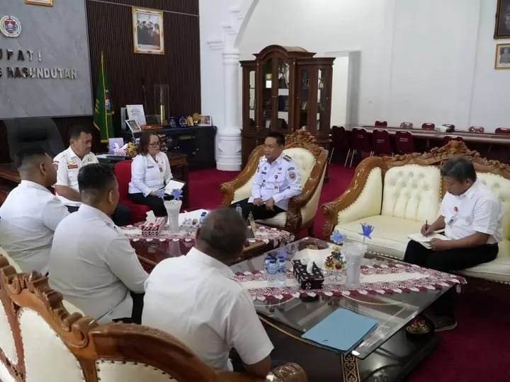 Bupati Humbang Hasundutan Dr. Oloan Paniaran Nababan, SH., MH terima audiensi Plt. Kepala Kantor Pertanahan Kabupaten Humbang Hasundutan Andes Saragi, S.T., M.Sc., beserta jajaran pada Rabu, 4 Maret 2026 di Ruang Kerja Bupati.