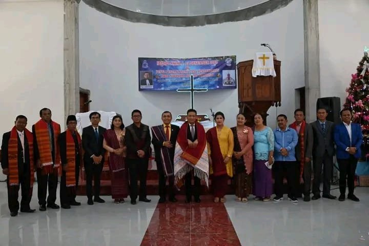 Menutup Khotbahnya Ephorus Emeritus mendoakan Bapak Bupati Oloan senantiasa dalam penyertaan Tuhan dalam melaksanakan tugas terutama dalam situasi saat ini bagi masyarakat yang terkena korban longsor dan banjir bandang di beberapa kecamatan wilayah Kabupaten Humbang Hasundutan.