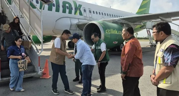 bersama Ketua TP PKK Ny. Neny Angelina JTP Hutabarat menyambut kedatangan Menteri Perumahan dan Kawasan Permukiman (PKP), Maruarar Sirait, di Bandara Internasional Silangit, Selasa (24/03/2026).