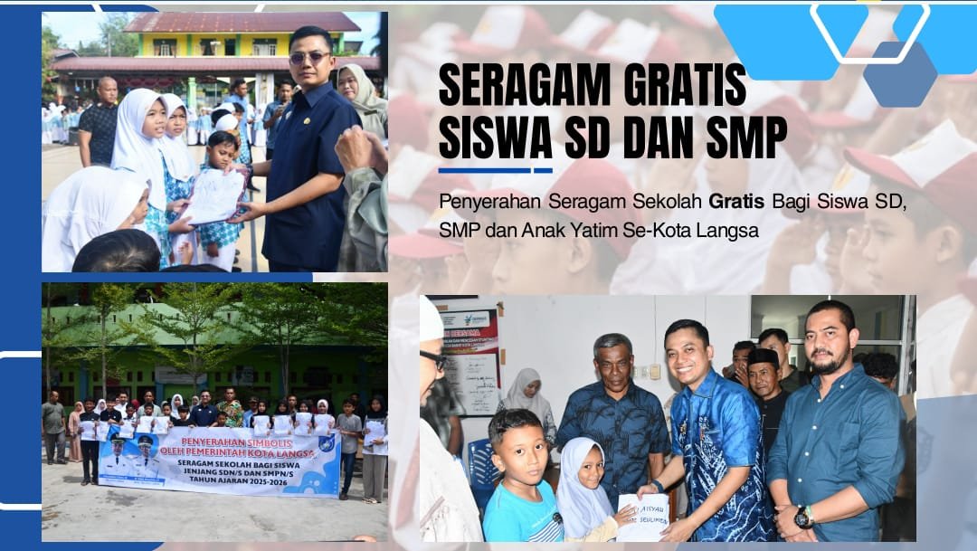 Telah dilaksanakan pembagian sebanyak 17.517 Seragam Sekolah Gratis Kepada siswa tingkat SD dan SMP serta sebanyak 2.146 kepada Anak Yatim se-Kota Langsa.