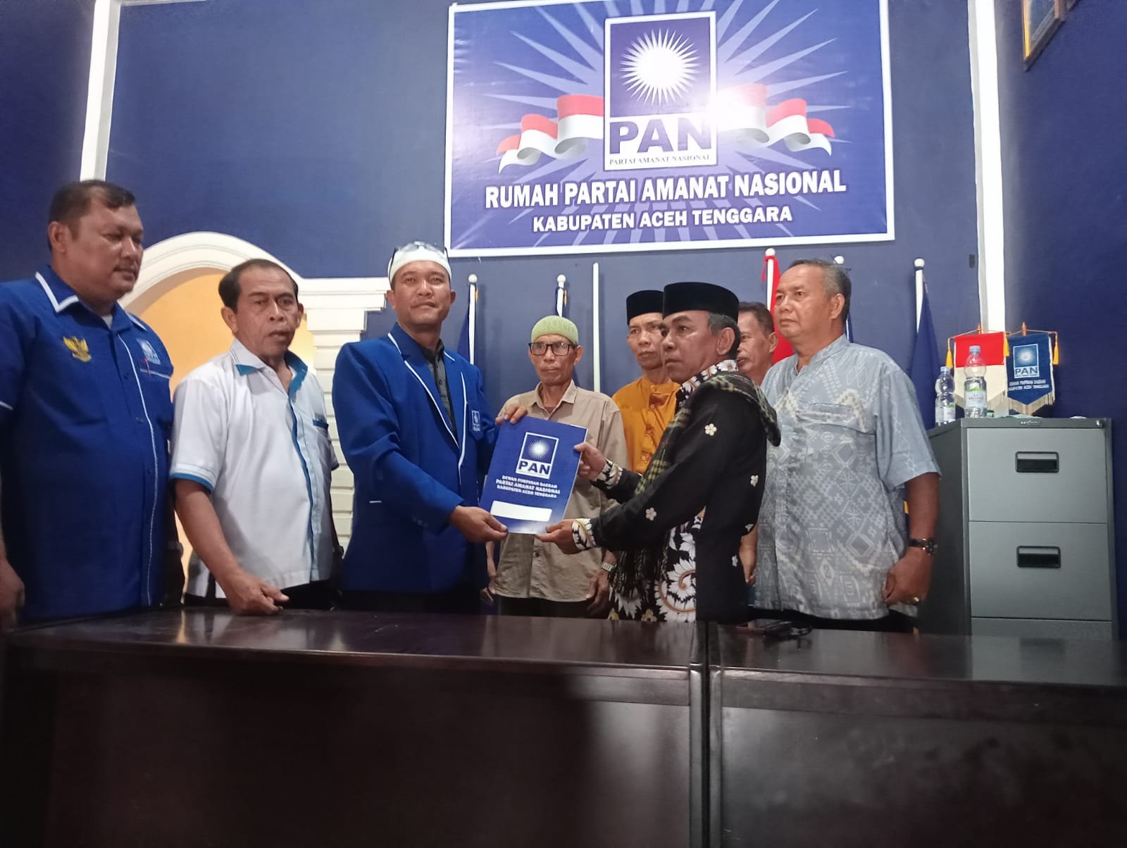 ACEH TENGGARA, Satupena.co.id- Sebagai bentuk keseriusannya untuk maju sebagai calon Wakil Bupati Aceh Tenggara Priode 2024- 2029 pada Pilkada 2024, Drs H. Syahrizal,M.,Si mengambil Folmulil dukungan cawakada ke Dewan Pimpinan Daerah (DPD) Partai Amanat Nasional (PAN), di Sekretariat PAN Jln. Terminal Terpadu, Babussalam, Aceh Tenggara, Kamis 2 Mei 2024.