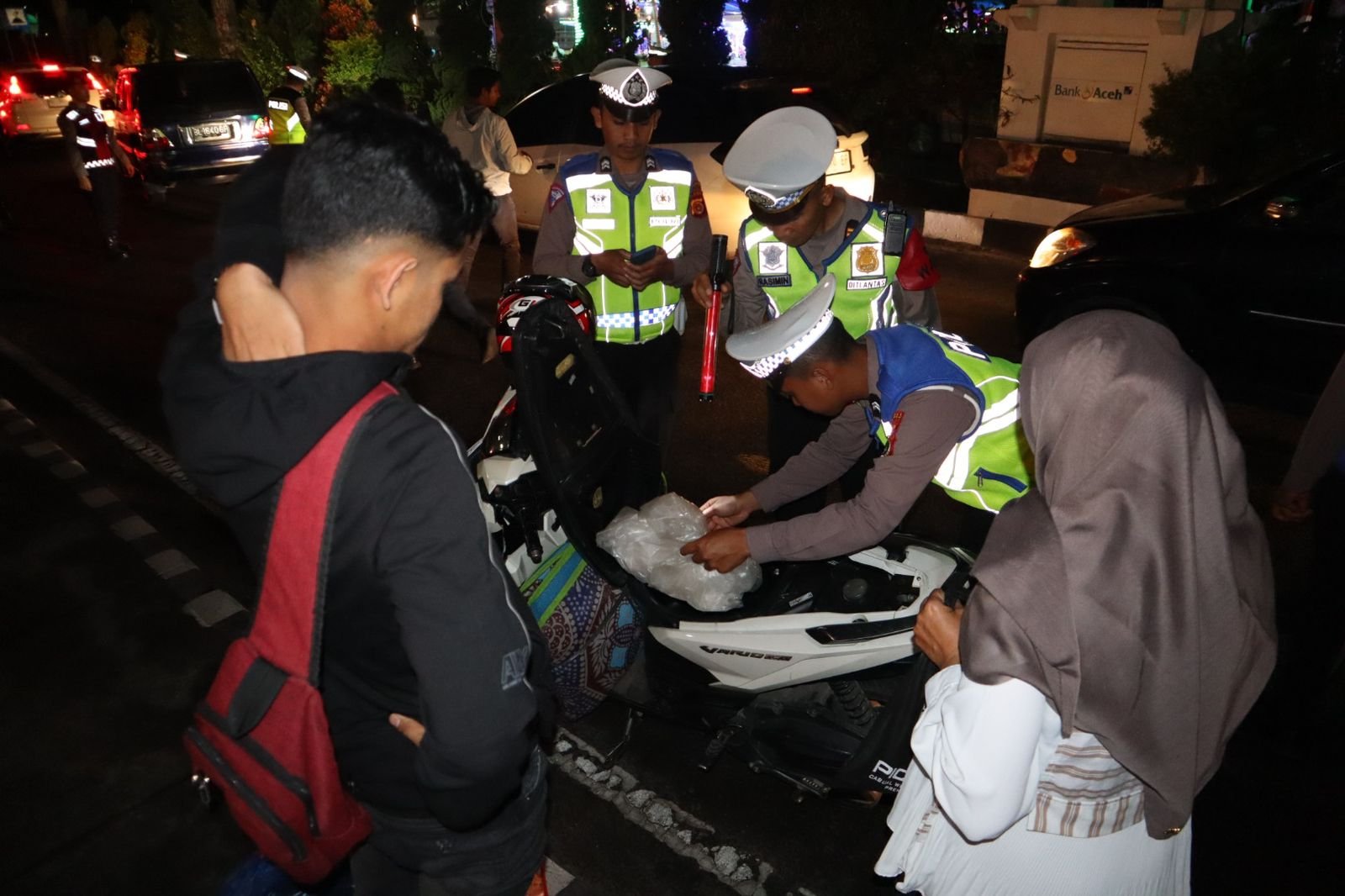 Rafliandi, Petugas melakukan pengecekan kendaraan, orang dan barang bawaan secara humanis guna memastikan pengendara tidak membawa barang-barang terlarang, Selain itu, petugas Juga menyampaikan himbauan kepada pengendara untuk tertib dalam berlalu lintas serta berhati-hati dalam berkendara di jalan raya.