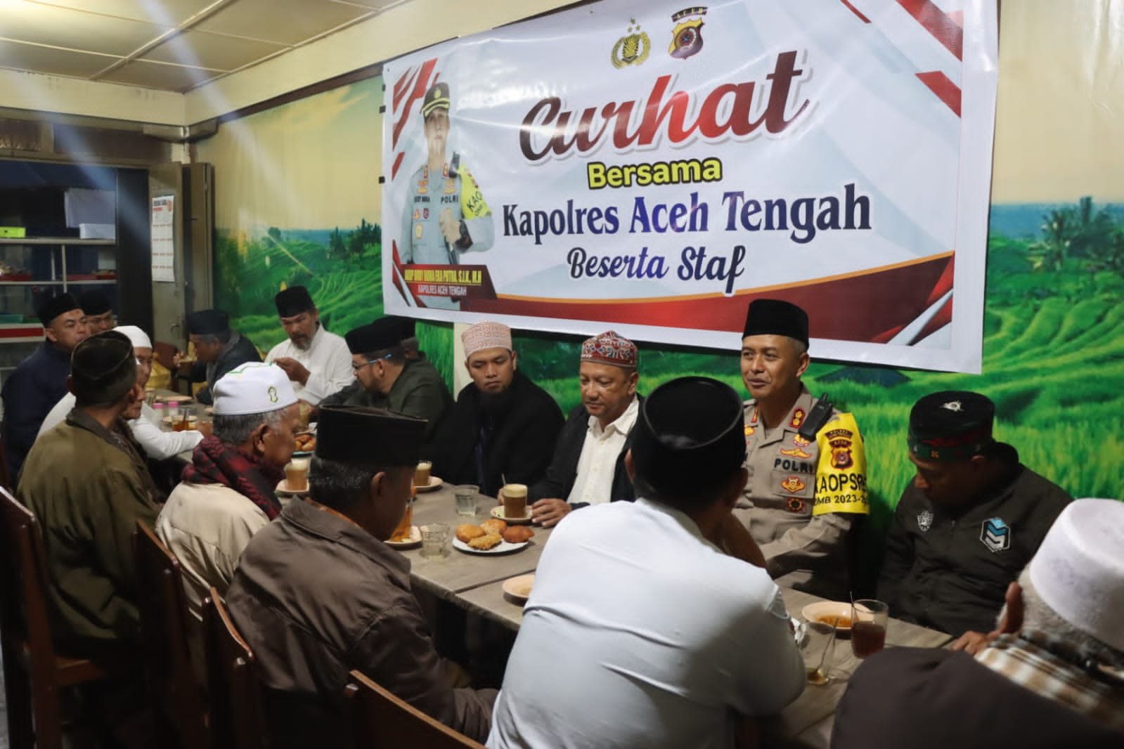 Kapolres Aceh Tengah AKBP Dody Indra Eka Putra, menggelar kegiatan Curhat bersama warga Masyarakat jemaah Shalat Shubuh Masjid Ruhama Takengon.