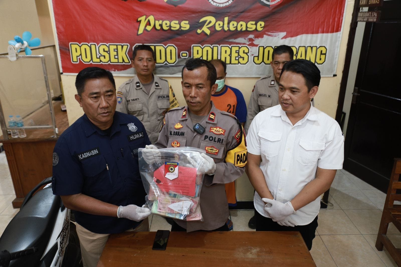 Jombang –satupena.co.id: Unit Reskrim Polsek Gudo berhasil meringkus pelaku pembobolan rumah di Dusun Kasemen, Desa Wangkalkepuh, Kecamatan Gudo, Jombang. Dalam aksinya, pelaku berhasil menggondol uang tunai sebesar Rp 107 juta.