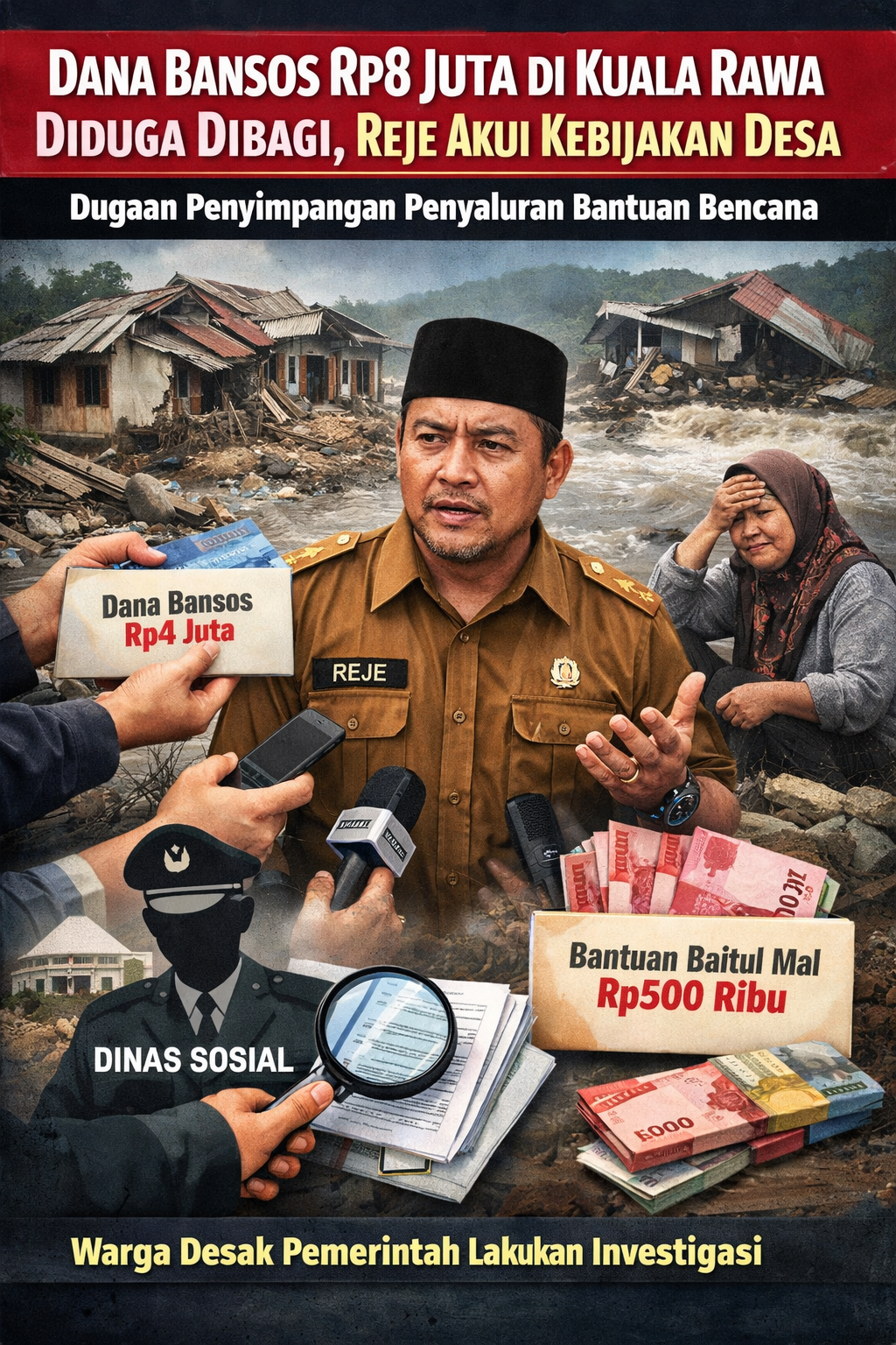 Aceh Tengah- Satupena.co.id:  Penyaluran bantuan stimulan bagi korban bencana hidrometeorologi yang terjadi pada 26 November 2025 di Desa Kuala Rawa, Kecamatan Rusip Antara, Kabupaten Aceh Tengah, menuai polemik di tengah masyarakat. Bantuan dari Kementerian Sosial sebesar Rp8 juta per penerima diduga dibagi kepada pihak lain berdasarkan kebijakan pemerintah desa.