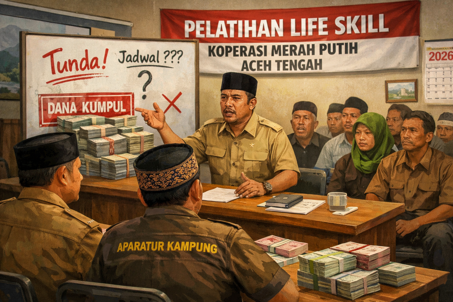 Aceh Tengah –Satupena.co.id:  Gonjang-ganjing isu kegiatan pelatihan life skill Koperasi Merah Putih di Kabupaten Aceh Tengah kian menjadi perbincangan di kalangan sejumlah aparatur kampung. Program yang direncanakan sejak 2025 itu hingga memasuki tahun anggaran 2026 belum juga terlaksana, sementara dana partisipasi dari puluhan desa disebut telah lebih dulu terkumpul.