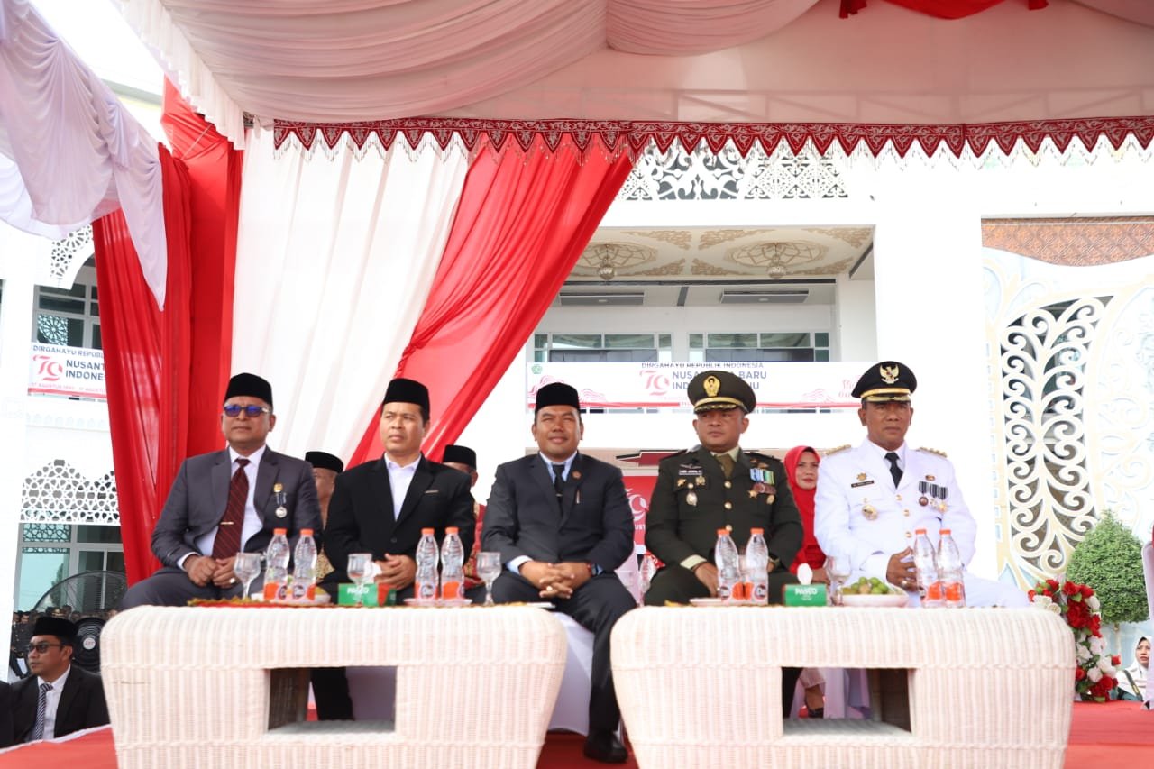 Upacara tersebut dipimpin langsung oleh Penjabat Bupati Pidie, Drs. Samsul Azhar, dan dihadiri oleh berbagai pejabat utama daerah, termasuk Ketua DPRK Pidie, Mahfuddin Ismail, S.Pdi., MAP, Kapolres Pidie, AKBP Jaka Mulyana, S.I.K., serta Kejari Pidie, Suhendra, S.H. Selain itu, turut hadir Ketua Mahkamah Syari’ah Pidie, Diana Evrina Nasution, S.Ag., S.H., dan Kepala Pengadilan Negeri Sigli, Eliyurita, S.H., M.H., dan sejumlah pejabat lainnya.