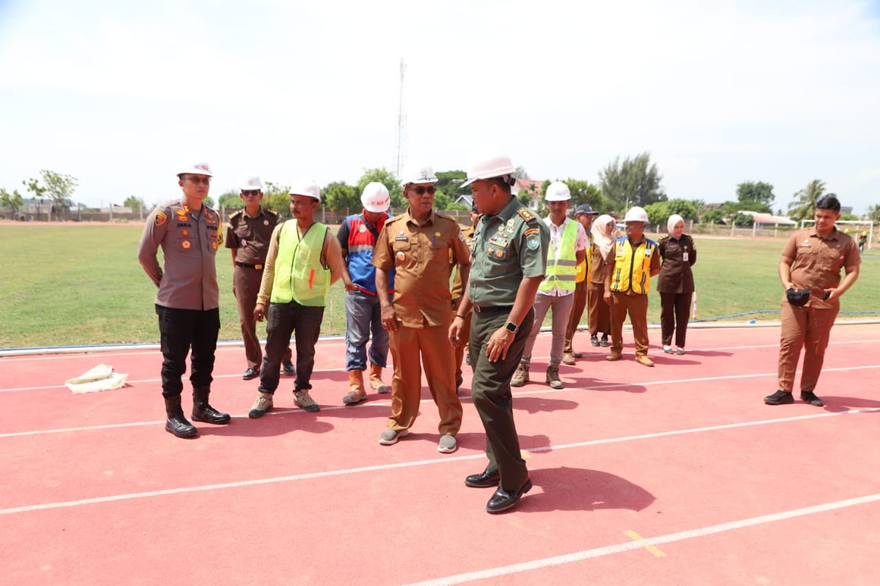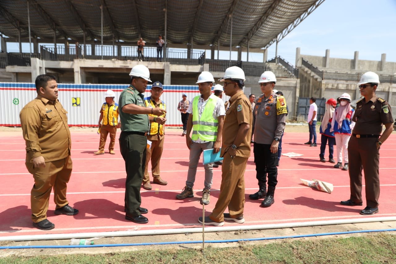 Pidie -satupena.co.id: Dandim 0102/Pidie, Letkol Inf Abd. Jamal Husin M.Han, bersama unsur Muspida Kabupaten Pidie kembali meninjau progres pembangunan Venue untuk Pekan Olahraga Nasional (PON) XXI Aceh-Sumut yang terpilih digelar di Kabupaten Pidie. Selasa (23/07/2024).