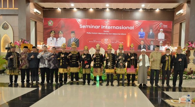 Tidak hanya sarat dengan ilmu pengetahuan, seminar internasional ini juga menampilkan kekayaan adat Aceh. Sejumlah unsur Muspida dan pejabat SKPK hadir dengan balutan pakaian adat pengantin pria Aceh (linto baro), lengkap dengan busana hitam berhias manik-manik, songket, serta kupiah meukutop.