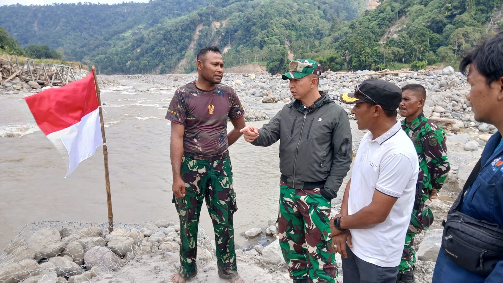 Dandim 0106/Aceh Tengah Tinjau Pembangunan Jembatan Sementara di Desa Bergang