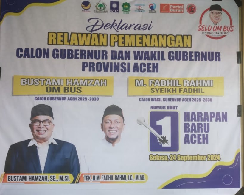 Khaidir juga menjelaskan bahwa Calon Gubernur dan Calon Wakil Gubernur Provinsi Aceh (Bustami Hamzah – M. Fadhil Rahmi) diusung dan didukung beberapa Partai, seperti Partai Nasdem, Partai Golkar, Partai PAN, Partai PAS Aceh, Partai PDA, Partai Gelora, dan Partai Buruh.