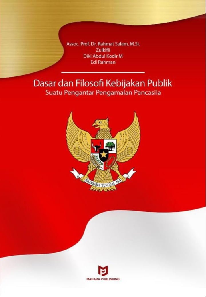 Buku “Dasar dan Filosofi Kebijakan Publik: Suatu Pengantar Pengamalan Pancasila” karya Assoc. Prof. Dr. Rahmat Salam, M.Si., Zulkifli, Diki Abdul Kodir M, dan Edi Rahman. “Alhamdulillah, sudah selesai cetak. Kamis yang lalu, sudah saya terima bukunya. Sudah dikirim juga ke penulis yang lain oleh penerbit,” kata Assoc. Prof. Dr. Rahmat Salam, M.Si., salah satu penulis buku “Dasar dan Filosofi Kebijakan Publik: Suatu Pengantar Pengamalan Pancasila,” Selasa (25/6/2024).