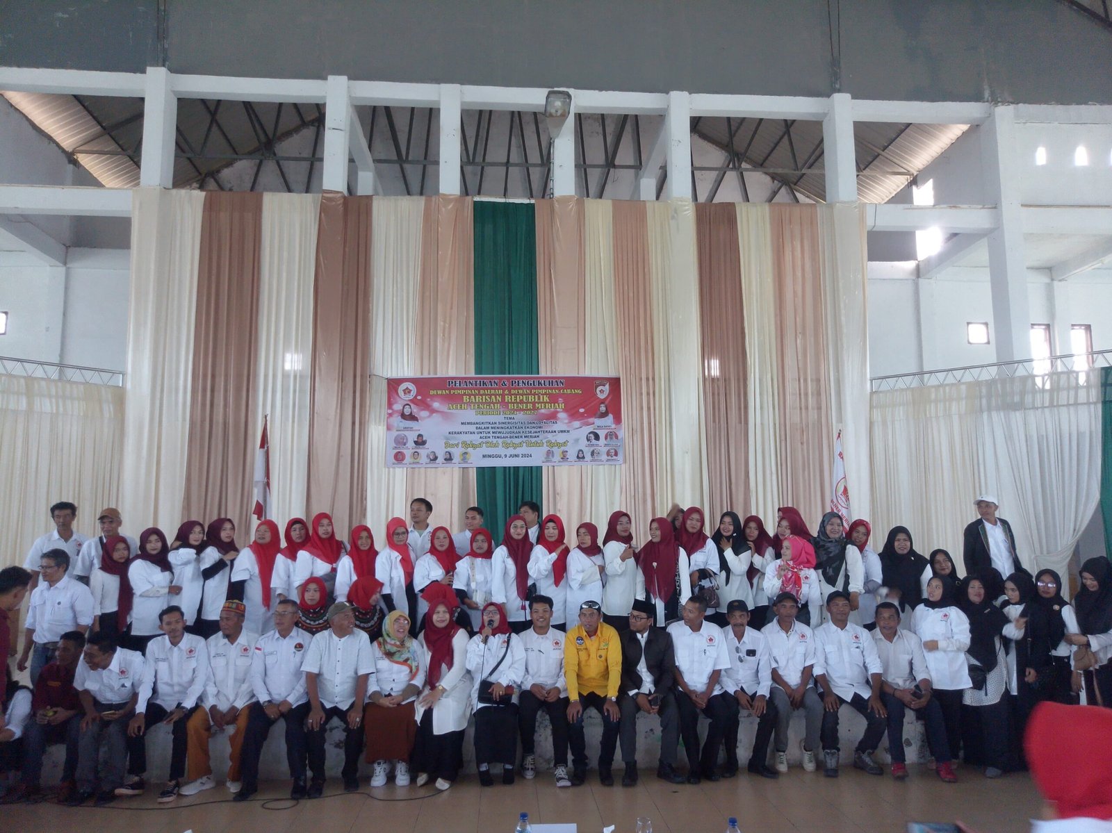 Bener Meriah-satupena.co.id: Dewan Pimpinan Wilayah (DPW) Aceh Nur Ainun,SH melantik Ketua Pengurus Dewan Pimpinan Daerah (DPD), Dewan Pimpinan Cabang (DPC) Barisan Republik di masing-masing Kecamatan di wilayah kabupaten Aceh Tengah dan Bener Meriah, di gedung Olah Raga & seni (GORS) simpang tiga Redelong Kabupaten Bener Meriah, Minggu , 09/06/2024.