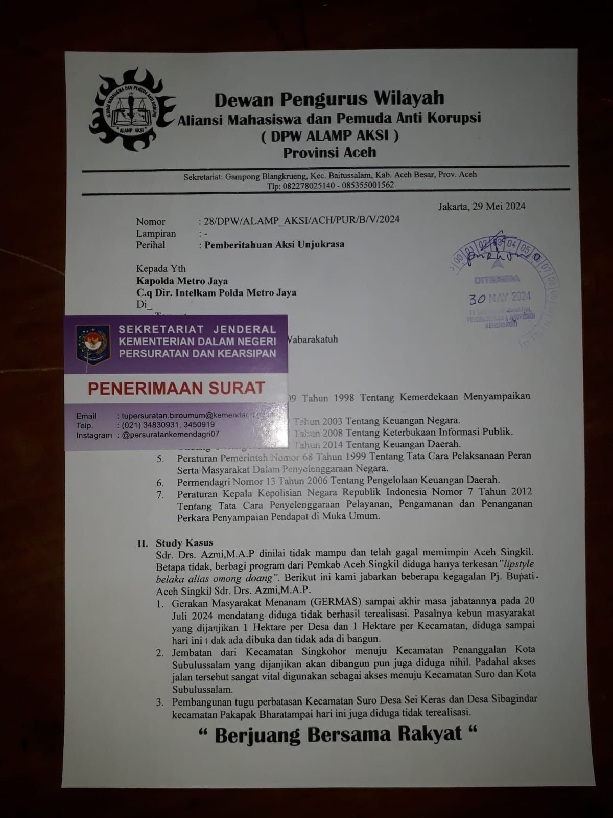 Tuntutan DPW ALAMP AKSI Provinsi Aceh: