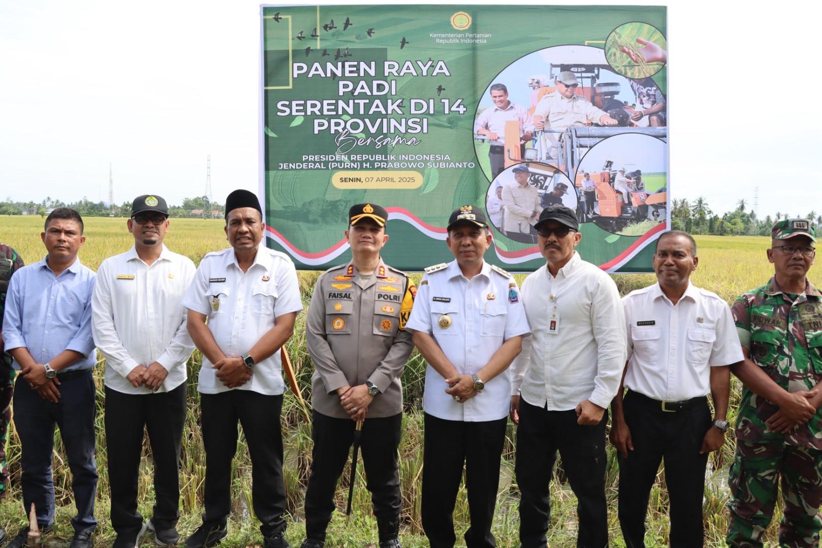 Dukung Ketahanan Pangan, Kapolres dan Bupati Pidie Jaya Hadiri Panen Raya Serentak