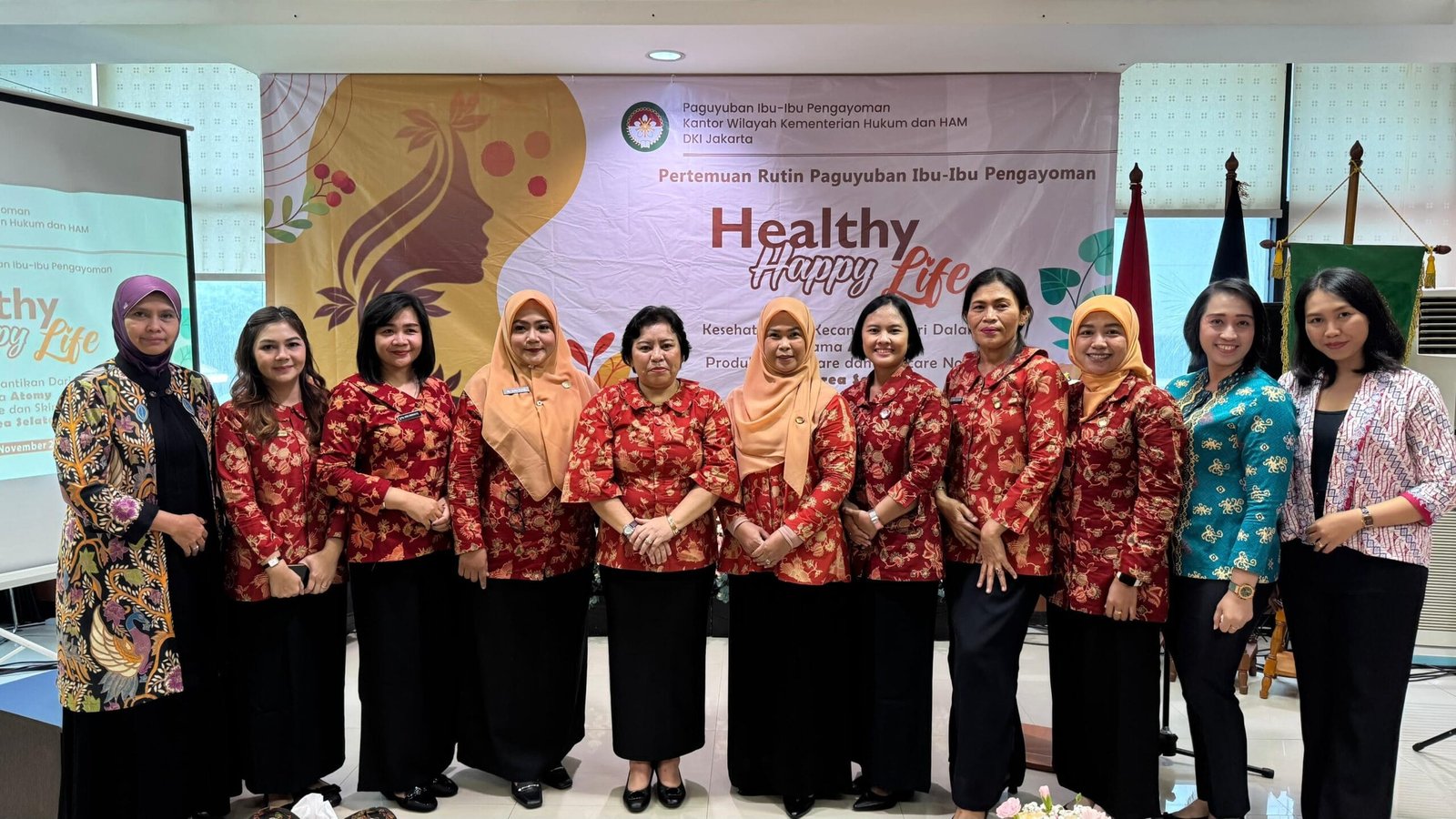 Jakarta -satupena.co.id: Paguyuban Ibu-Ibu Pengayoman bersama Dharma Wanita Persatuan (DWP) Kantor Wilayah Kementerian Hukum dan Hak Asasi Manusia (Kanwil Kemenkumham) DKI Jakarta sukses menggelar pertemuan rutin yang dikemas dalam bentuk seminar kesehatan bertajuk “Healthy Life, Happy Life, Jumat (15/11/2024). Acara ini bertujuan untuk memberikan pemahaman lebih dalam mengenai pentingnya menjaga kesehatan tubuh dan kecantikan dari dalam diri.