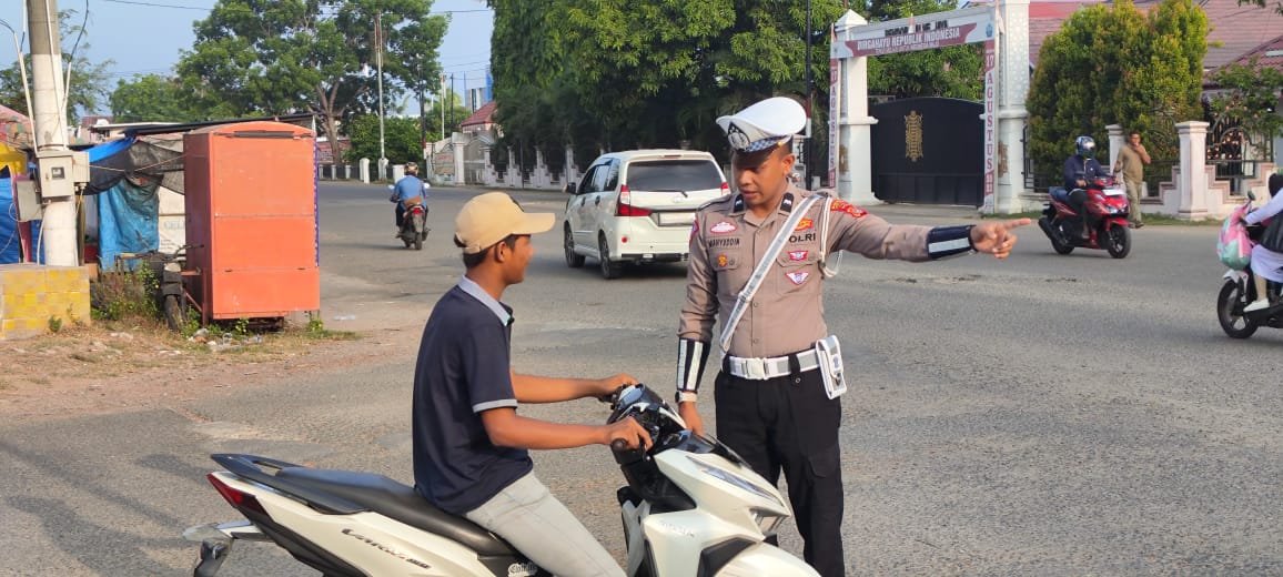 Dalam operasi tersebut, petugas Satlantas Pidie Jaya menghentikan pengendara yang tidak mengenakan helm dan memberikan teguran secara humanis.