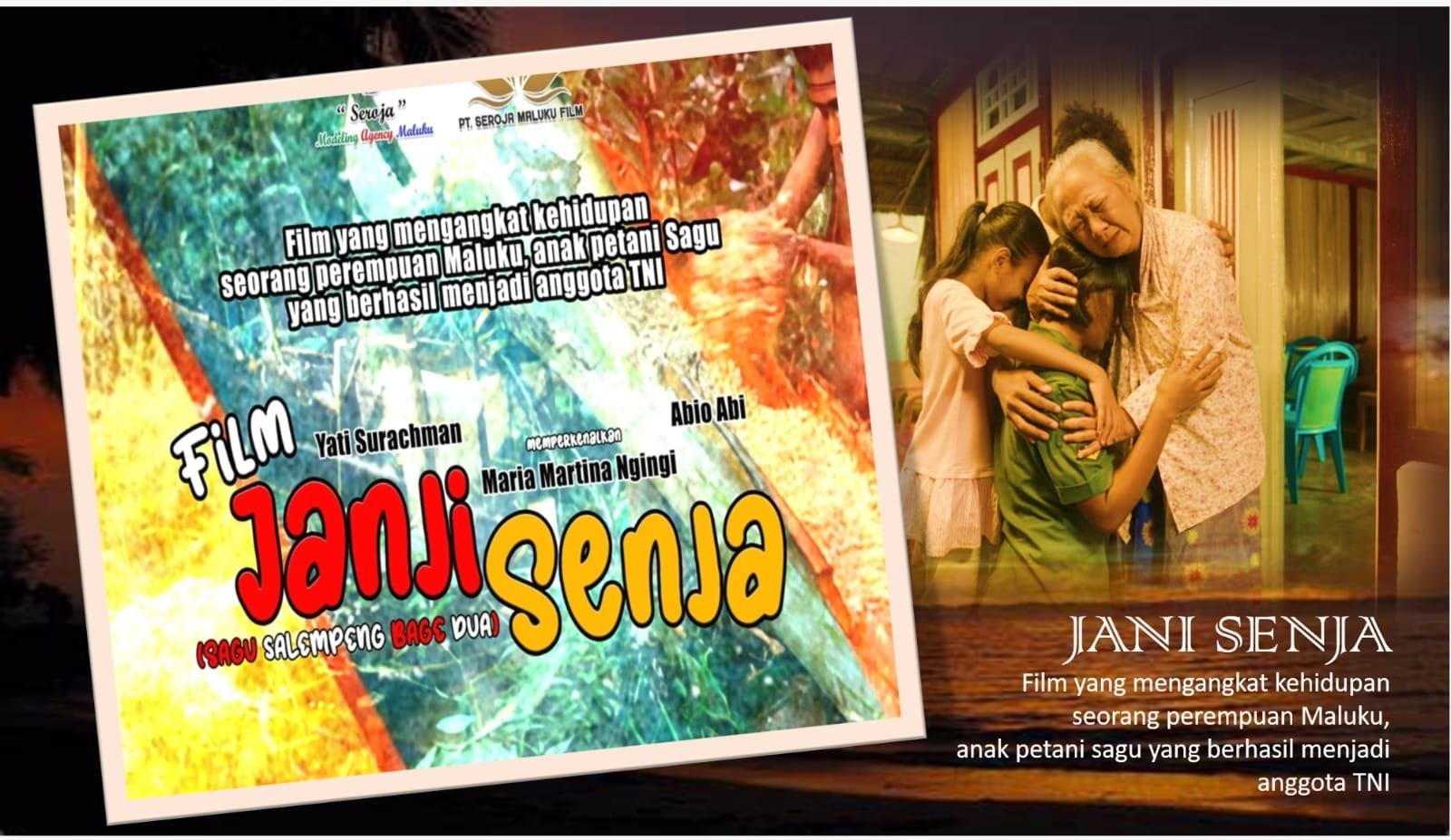 Jakarta- Satupena.co.id. Film “JANJI SENJA” merupakan “BASED ON TRUE EVENT” mengangkat cerita tentang seorang gadis maluku anak Petani Sagu Sederhana yang berjuang untuk meneruskan amanah dari almarhum Ayah tercinta agar bisa menjadi anggota TNI tanpa ada bayaran uang sepeserpun.