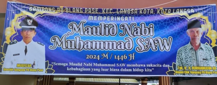 Langsa- Satupena.co.id:Gampong Blang Pase Paya Bujok Memperingati Maulid Nabi SAW 1446 H,/2024 M,Dengan Mengambil Tema”Semoga Maulid Nabi Muhammad SAW Membawa Suka Cita dan Kebahagian luar Biasa dalam hidup Kita”,Dengan Bertempat Di Mesjid Taqwa ,Blang Pase Paya Bujok,Kec Langsa Kota,Kota Langsa,Selasa(16/9/24).