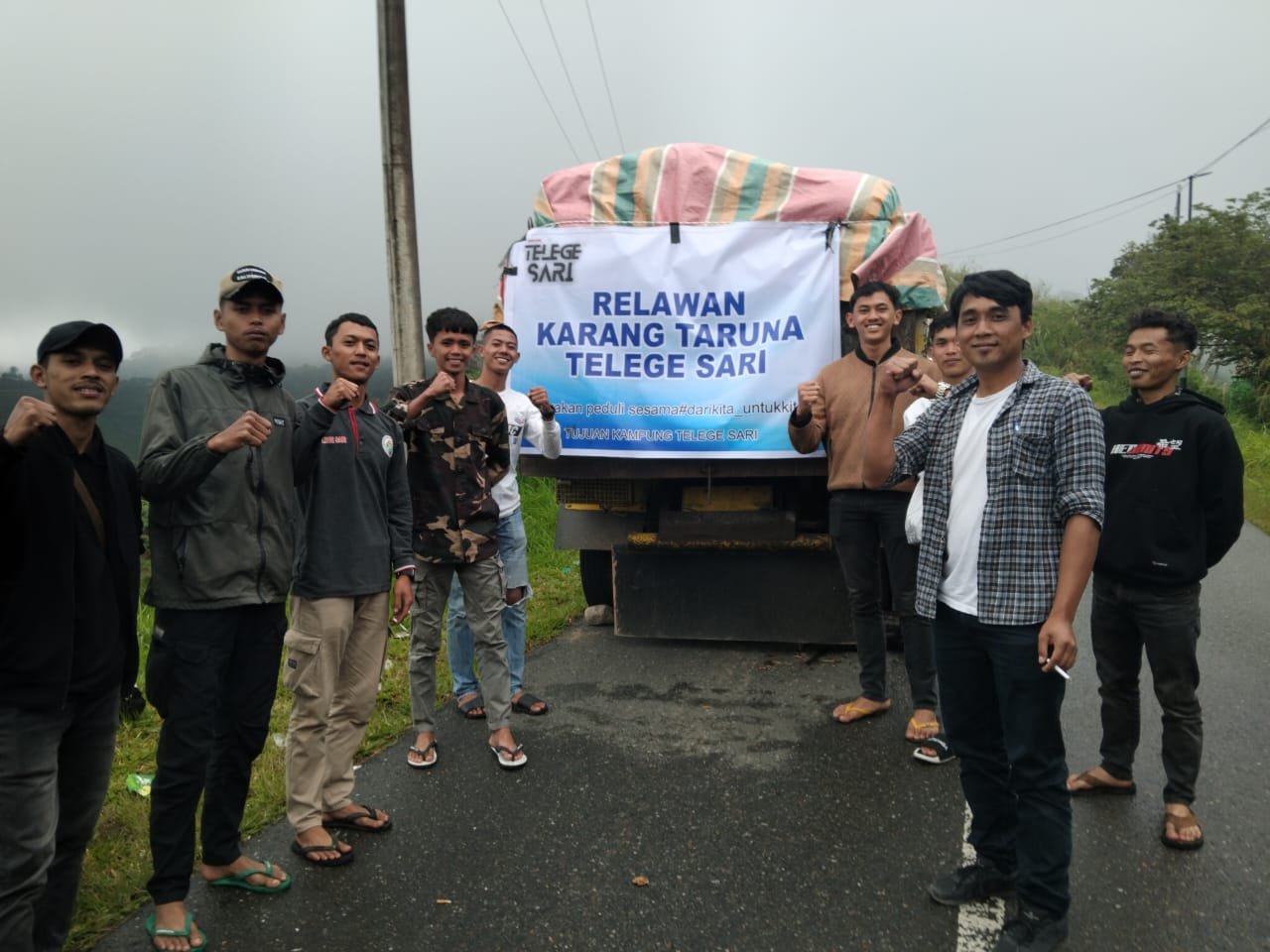 Dalam perjalanan menuju lokasi, truk yang mengangkut muatan beras sempat mengalami kerusakan di tengah jalan. Meski dihadang kesulitan akses, para relawan Karang Taruna bersama Reje (Kepala Desa) Telege Sari, Bapak Son Haji Yulianto, tetap teguh pada misi mereka. Mereka bahu-membahu mencari solusi agar bantuan logistik tersebut tidak tertahan.