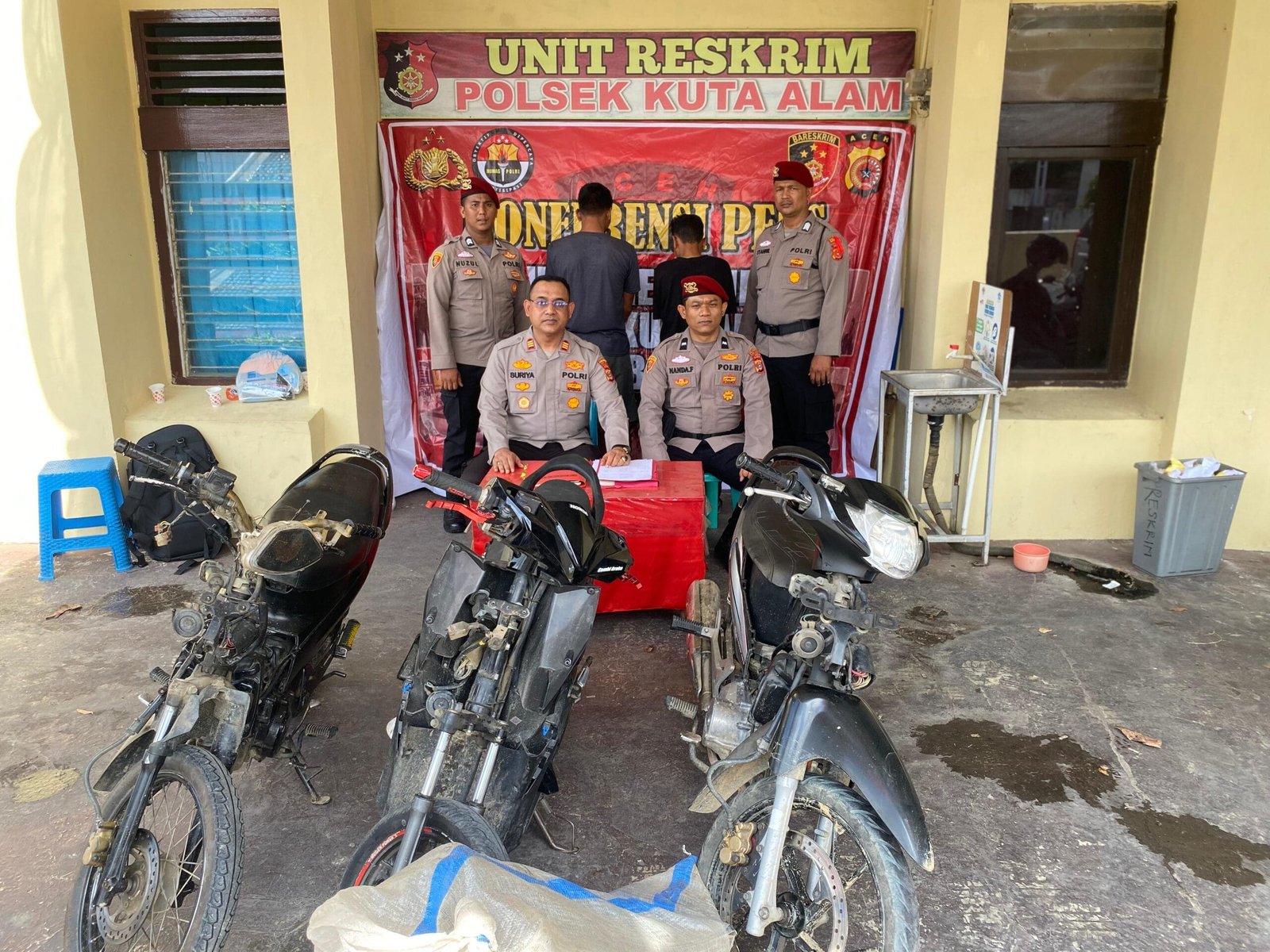 Dalam kasus ini, polisi ikut mengamankan motor berbagai jenis milik korban. Pelaku masih ditahan di Polsek Kuta Alam atas perbuatannya.(**)
