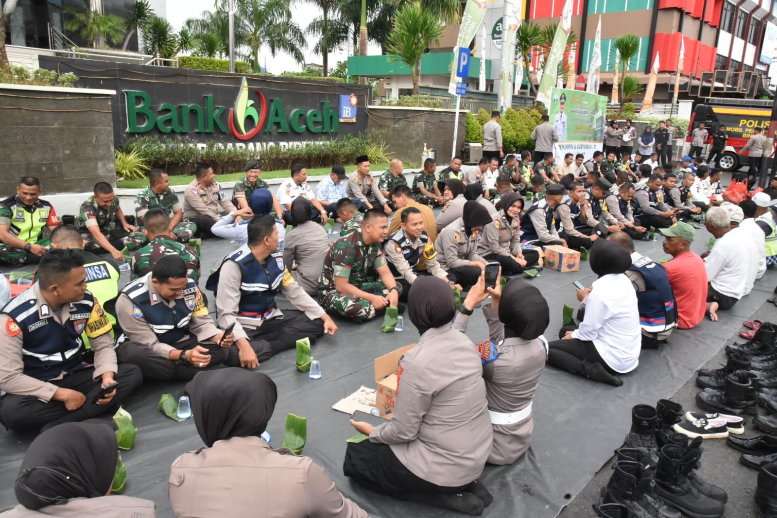 ” Hari ini kami Jajaran Polres Bireuen, TNI dan Masyarakat melaksanakan Ngopi dan sarapan bersama diparkiran depan bank aceh, ini merupakan bentuk sinergitas TNI – Polri dan Pemda, hadir ditengah – tengah Masyarakat, dalam rangka menciptakan Kondisi Kamtibmas yang Aman, Damai dan Sejuk diwilayah Kabupaten Bireuen, khususnya menjelang pelaksanaan Pilkada Serentak 2024 mendatang, kami berharap dan mengajak kepada seluruh elemen Masyarakat agar bersinergi dalam mejaga situasi keamanan diwilayah Masing – masing, serta ayo kita tingkatkan rasa nasionalisme dan patriotisme kita dalam menyambut HUT RI Ke 79, mari kita pasang bendera Merah Putih, baik dirumah, pertokoan, perkantoran dan tempat umum lainnya, Nusantara Baru, Indonesia Maju” ucap AKBP Jatmiko