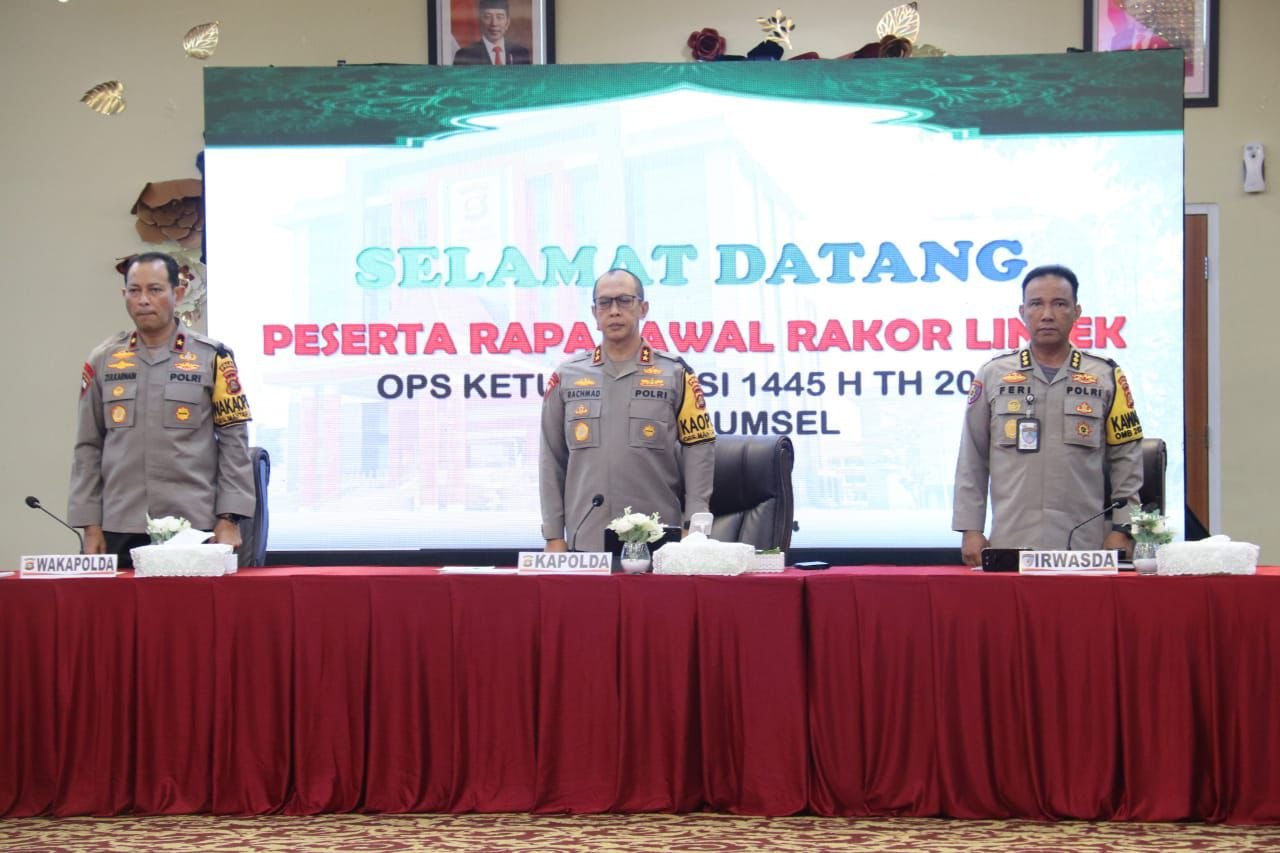 Menghadapi musim lebaran 1445 Hijriah tahun 2024, Polda Sumatera Selatan menyiapkan pengamanan yang dikemas dalam wadah ‘Operasi Ketupat Musi 2024’ yang diawali dengan rapat koordinasi lintas sektoral dimapolda Sumsel. Rabu (27/3/2024).