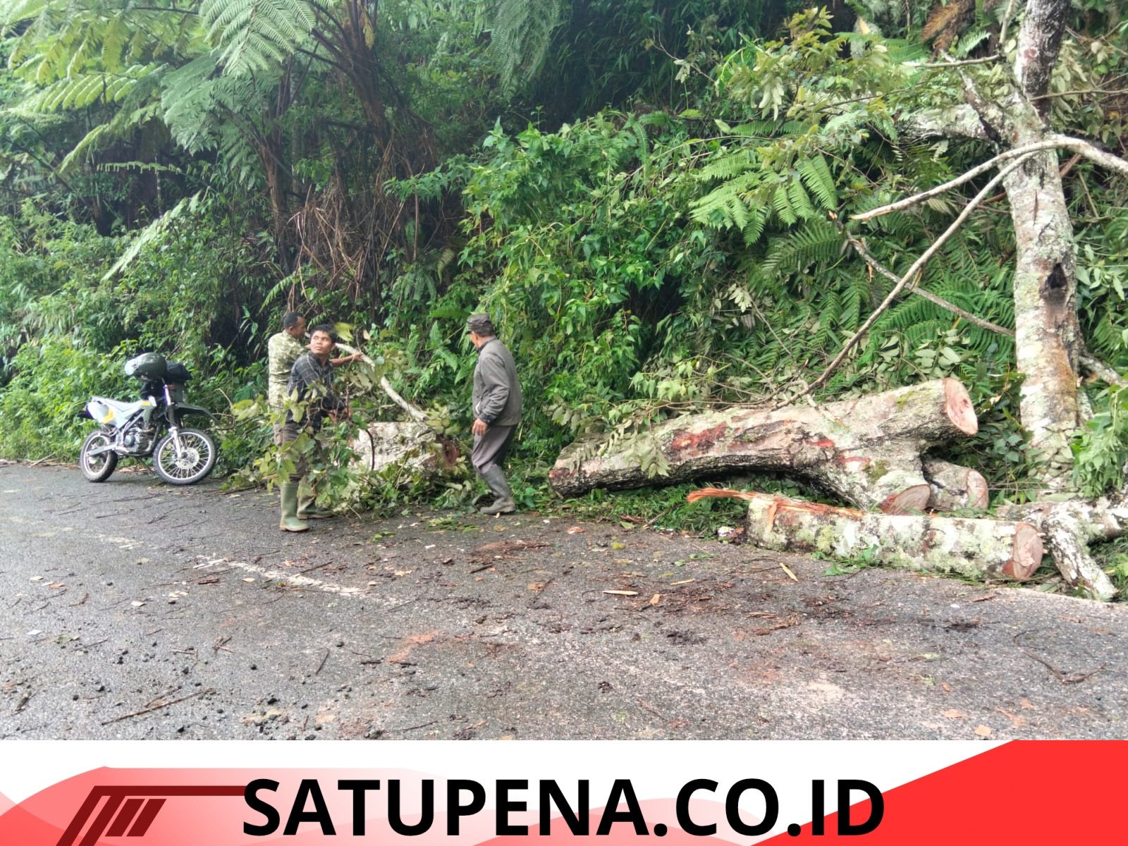 Aceh Tengah –Satupena.co.id:  Curah hujan yang tinggi mengakibatkan terjadinya  pohon tumbang di ruas jalan Takengon–Jagong, tepatnya di Desa Linung Ayu, sehingga mengganggu kelancaran arus lalu lintas, Jumat (17/4/2026).