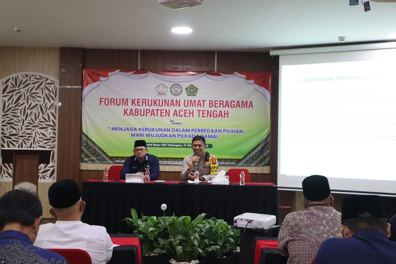 Adapun tema Forum Kerukunan Umat Beragama Kabupaten Aceh Tengah yakni “Menjaga Kerukunan Dalam Perbedaan Pilihan, Mari Wujudkan Pilkada Damai”.